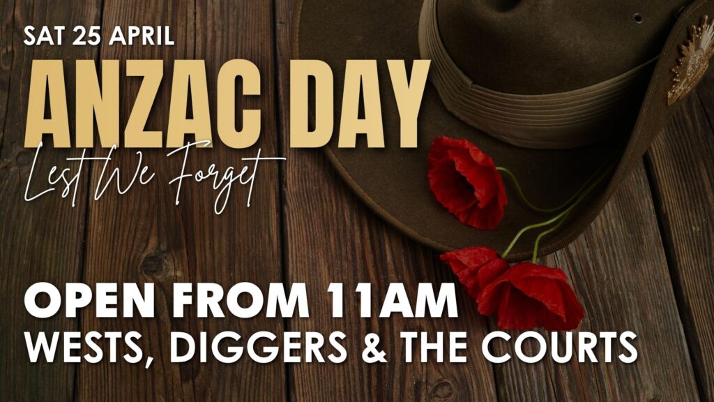 Settle in for a full afternoon and evening of footy, with all the ANZAC Day NRL action shown live on the big screens at Wests and Diggers.