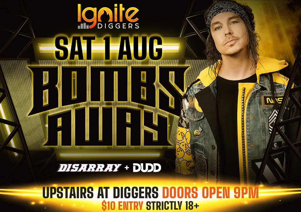 💥 Bombs Away is LOCKED IN for IGNITE at Diggers – Saturday 1st August! 💥