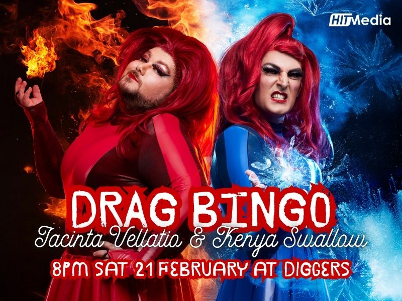 Get ready for a night of glitz, glamour, and cheeky fun as Jacinta Vellatio and Kenya Swallow take over Diggers Showroom in Tamworth for an unforgettable night of Musical Drag Bingo! Expect outrageous outfits, dazzling performances, and plenty of fabulous prizes. It’s bingo, but with a fabulous drag twist you won’t want to miss!