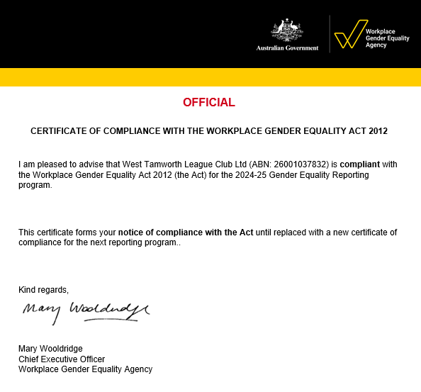 In addition, WGEA is responsible for administering the Workplace Gender Equality Act 2012 (Cth). Wests Entertainment Group is required to submit an annual report to the agency each year.